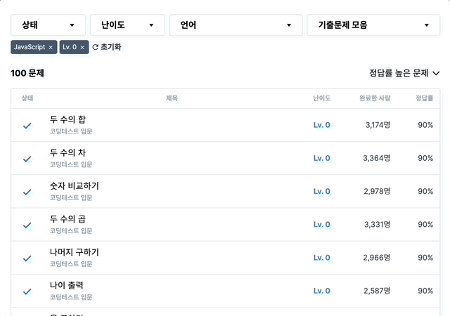 | [프로그래머스] Lv. 1 - 1페이지 문제 ALL CLEAR (0) | 2022.10.12 |
