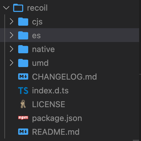 저는 recoil 하위의 cjs, es, native, umd 폴더의 index.js 파일에서