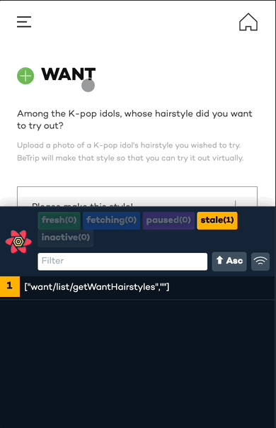 상태(status)가 fetching -> fresh -> stale로 변경됨