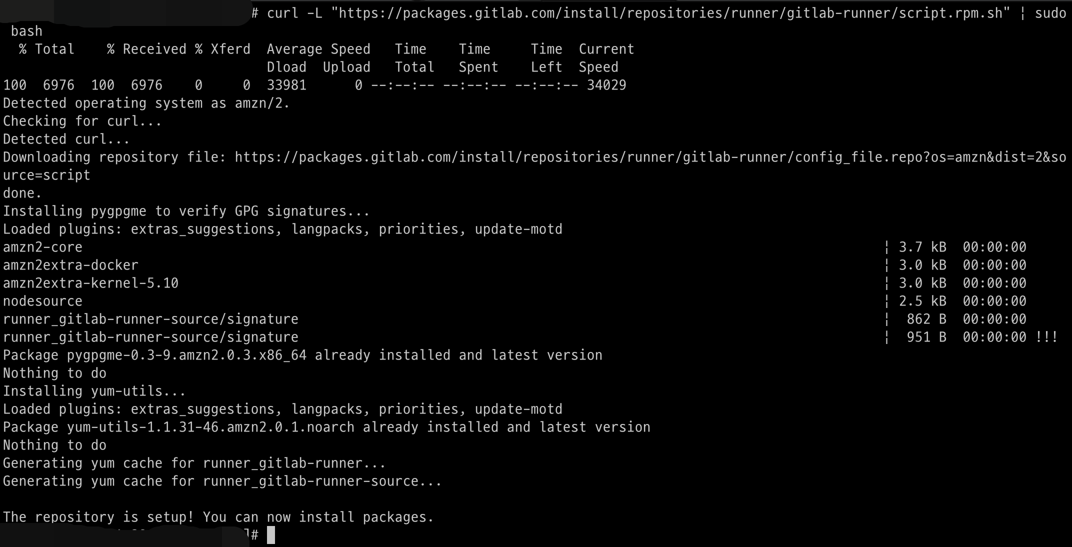 curl -L "https://packages.gitlab.com/install/repositories/runner/gitlab-runner/script.rpm.sh" | sudo bash
