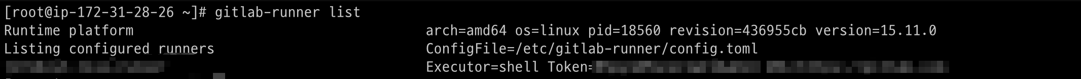Runner가 잘 등록되었다면, gitlab-runner list 명령어 후 목록에 나타날 것입니다.